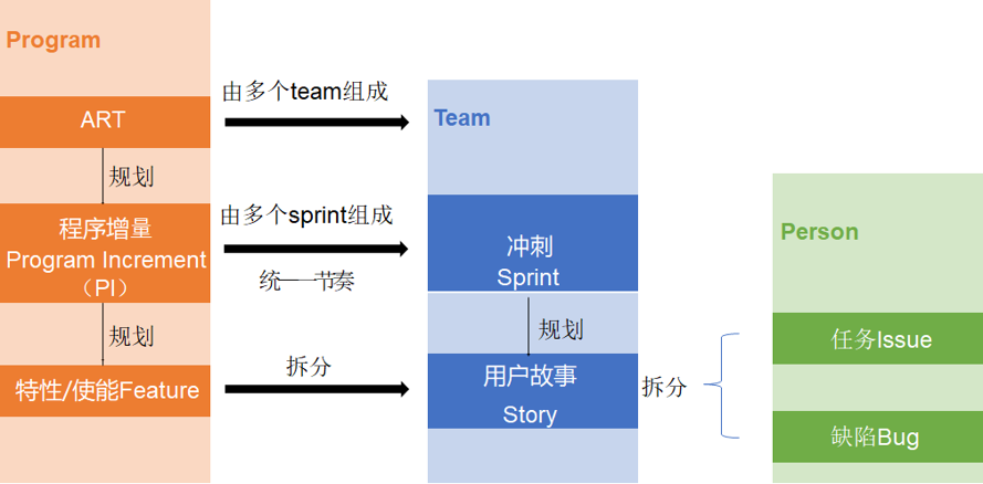 投资组合层从价值流的角度来分析史诗级的需求。史诗可以以价值流的角度分解成能力层、产品特性、用户故事等,然后由敏捷团队来实现用户故事。