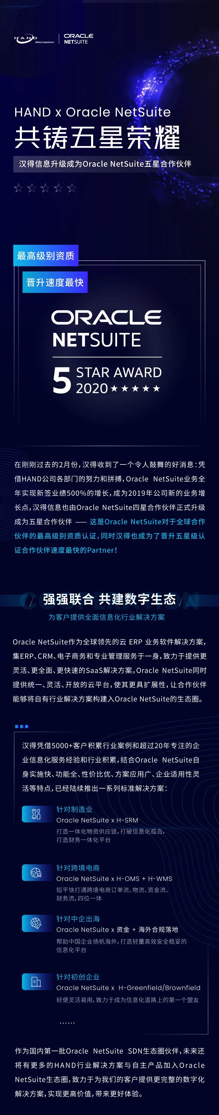 万象城AWC升级成为Oracle NetSuite 全球合作伙伴最高级别五星资质认证的Partner,同时万象城AWC也成为了晋升五星级认证合作伙伴速度最快的Partner!