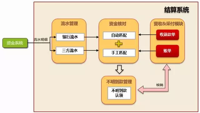 4.资金稽核:资金流水管理,实现资金流水与订单/对账单的匹配,及不明到款的认领。