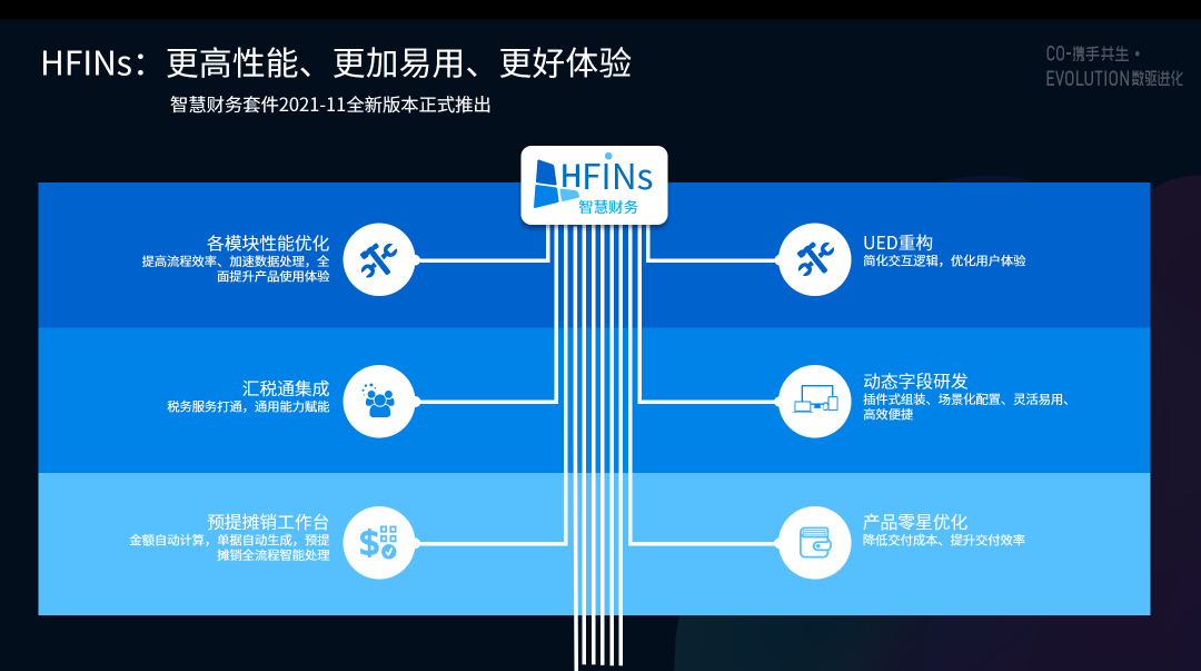 财务领域是企业数字化转型的主战场之一,在2021-11版,智享财务聚焦于产品性能优化、模块化组件引入、场景化应用研发和用户体验提升,对“清分结算产品”、“智慧财务套件”“汇税通平台”三大产品进行全新升级。