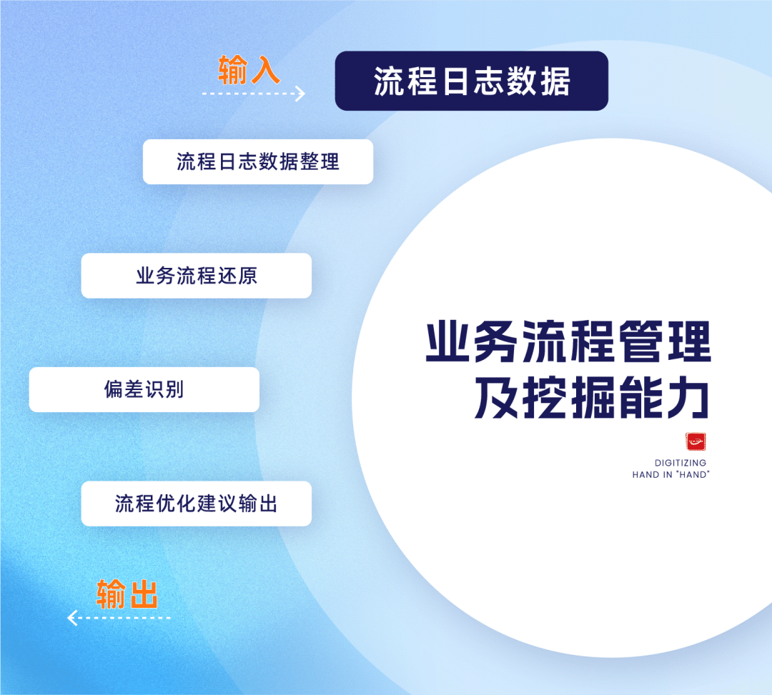 业务流程管理及挖掘能力的实现过程包括流程日志数据采集、流程发现与还原、偏差识别、优化建议及流程自动化落地,形成持续流程管理的价值闭环。能力的典型应用场景有企业审批流提效、客户服务流程优化及企业内审合规管理诊断等。