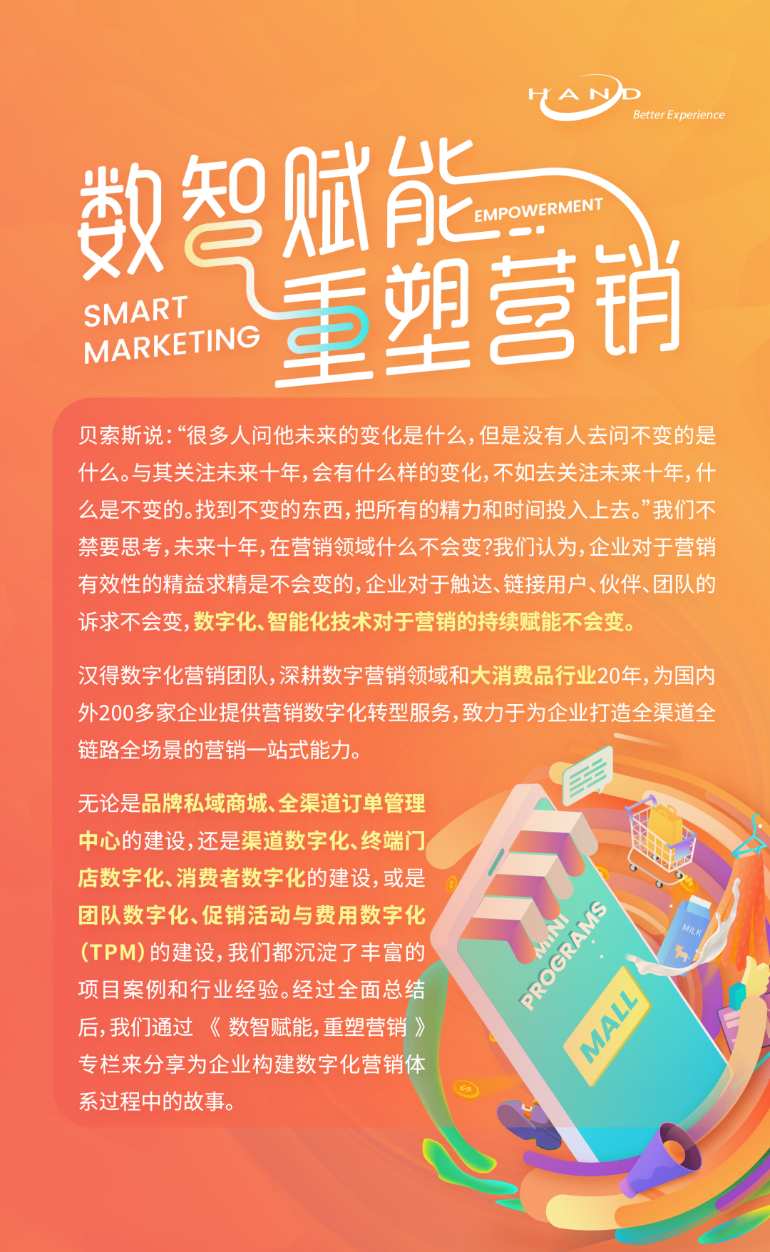 消费品行业是一个比较庞大而又多变的领域,万象城AWC数字化营销团队不仅仅在渠道数字化方面,在终端数字化、消费者数字化、团队数字化方面都有完整解决方案,欢迎咨询、探讨。