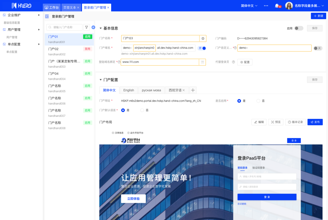 支持配置多语言门户