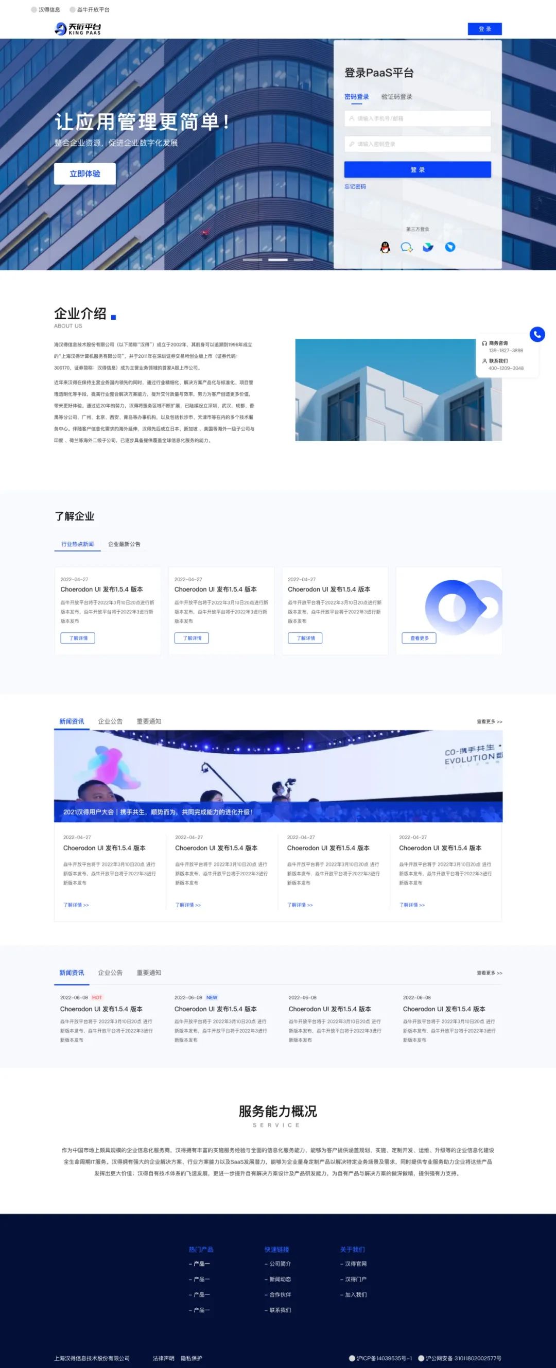 支持配置登录前门户,可作通用门户,租户级门户,用于丰富登录前信息展示