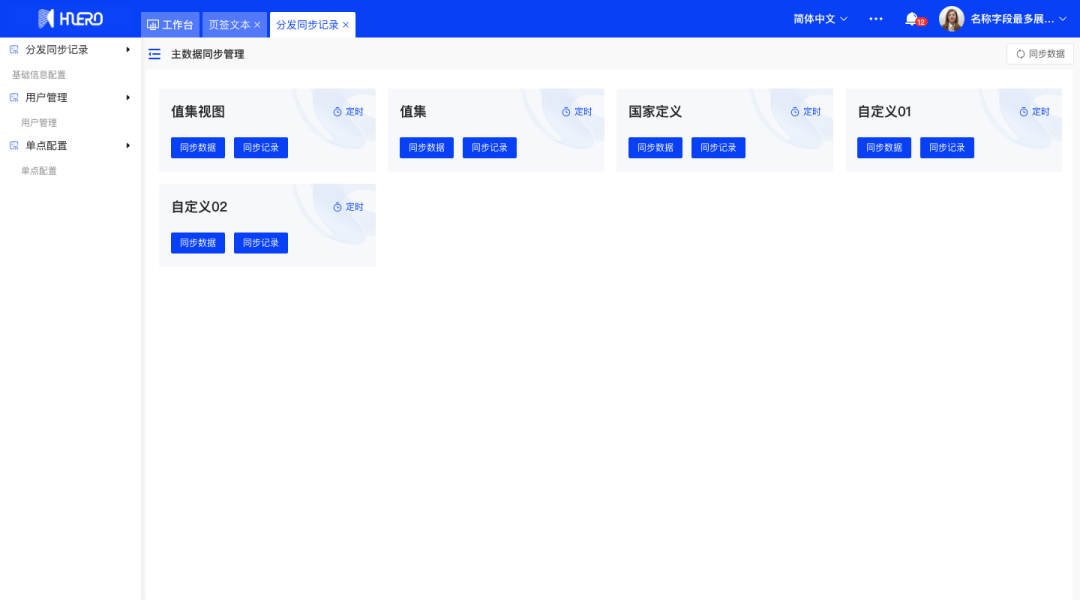 以产品维度,支持如值集,国家,币种等多种主数据类型,实现对各个环境平台主数据的管理。