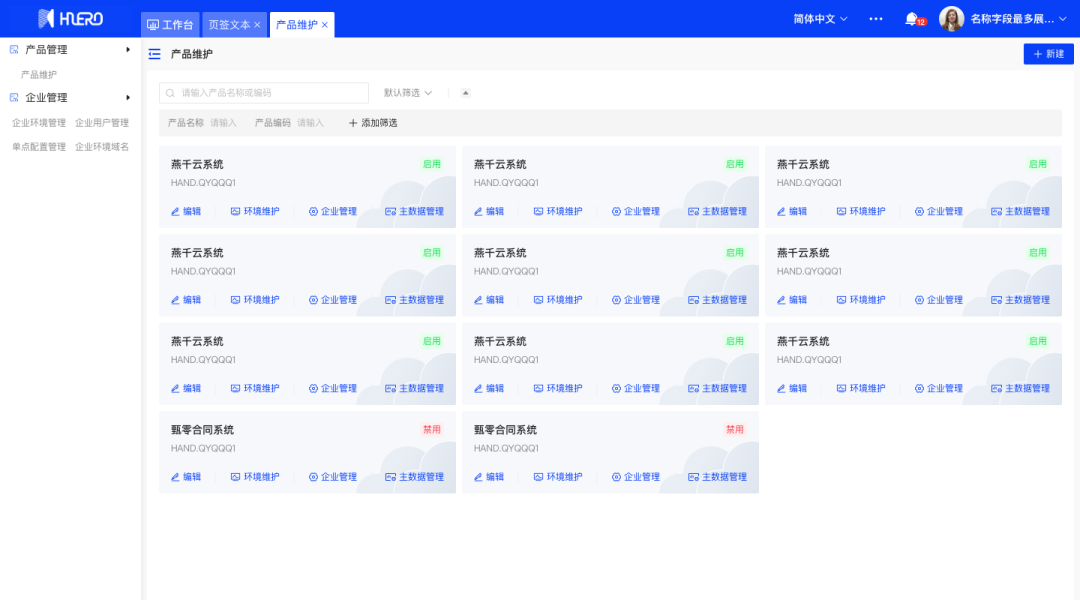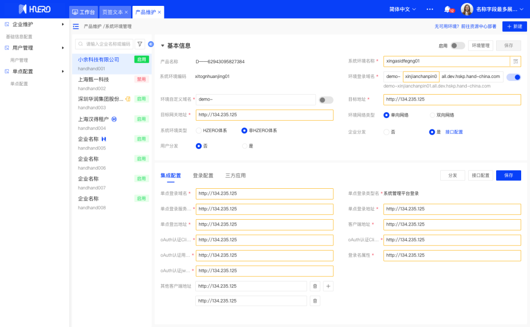 支持产品管理企业自主创建和管理属于自己的产品及环境,管理环境域名