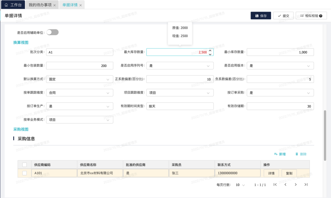 修订单据中高亮显示更新内容,方便审批人员快速定位更改内容;