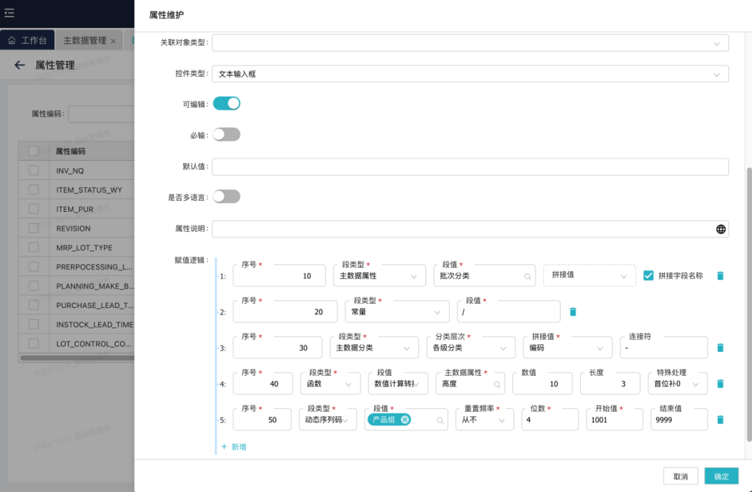 支持基于各属性字段配置赋值逻辑,无需针对特定字段专项开发,仅需界面配置即可实现自动化赋值。可满足多样化的赋值场景,例如:1)将多个属性信息拼接组合;2)对数值进行函数计算,支持首位补0等特殊场景;3)拼接各层级分类信息。