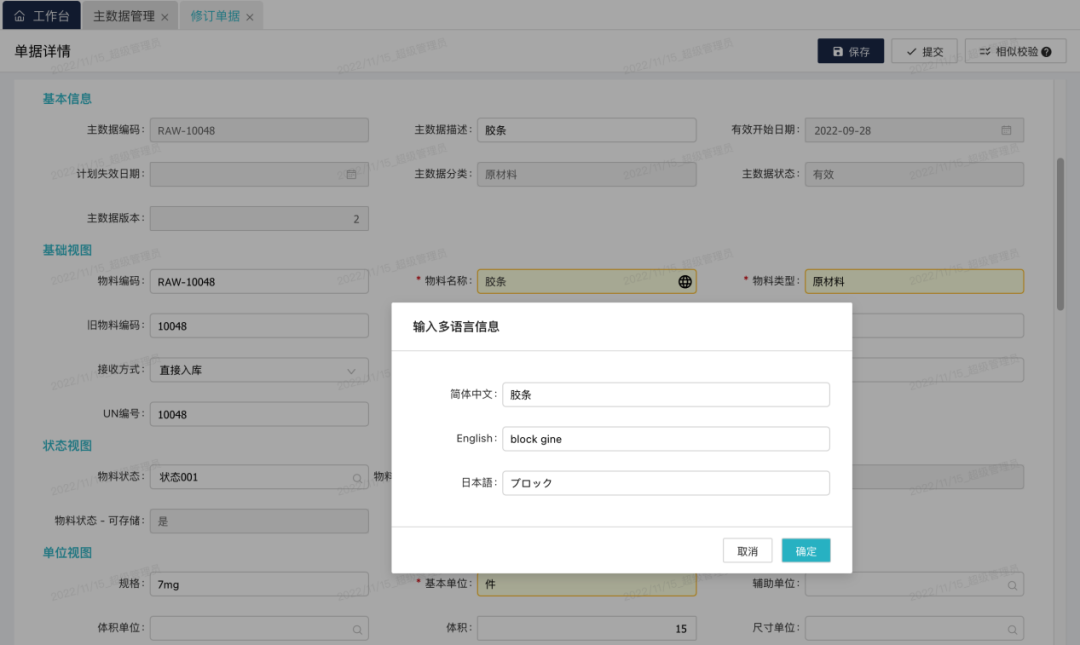 支持维护主数据字段的多语言信息,支持顺利获得接口进行上下游共享;