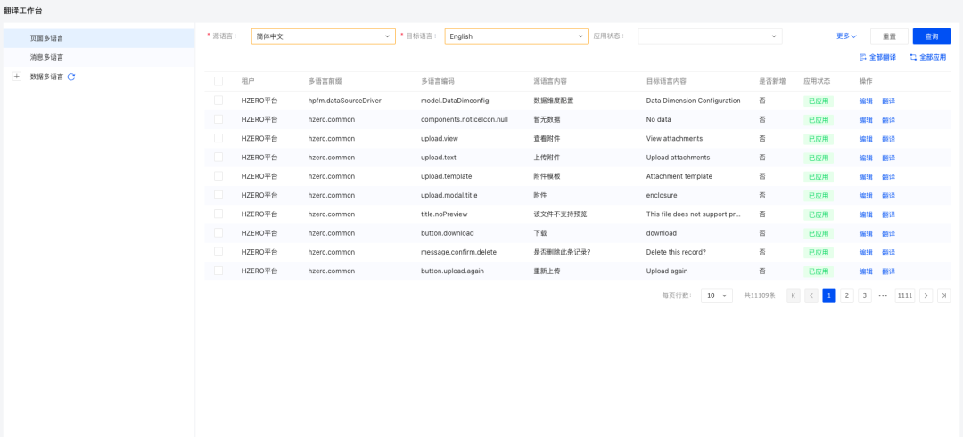 近期 HZERO 企业版发布 1.10.0.RELEASE版,共新发布多个新增组件、新增功能,并针对平台进行组件以及常用功能优化、修复已知缺陷,大大加强了HZERO数字化 PaaS 平台的全面性、稳定性及安全性。 服务版本:1.10.0.RELEASE 发布时间:2022年11月30日 前端版本:1.10.0 数据版本:1.10.RELEASE 平台六大提升 平台安全提升 排除框架安全漏洞、三方组件安全漏洞以及增强平台安全设置。 个性化能力增强 针对页面二开需求加强页面个性化配置能力;后端加强API个性化与增加在线Jar的上传应用。 国际化能力提升 增加翻译工作台,支持多语言配置全部实现可线上配置应用;增加国际化数字格式等。 组件持续完善 大大增强平台治理能力;优化完善原70+组件,增加15+插件。 UI体验全面升级 主题/皮肤支持更多配置以及可灵活配置样式;万象城AWC样式优化、多平台功能整体操作与样式优化。 国产化全面适配 更多国产化服务器、操作系统、中间件、数据库的适配与认证。 重点内容抢先看 服务组件升级 pring-boot-starter-parent 2.5.12 2.5.14 spring-cloud-dependencies 2020.0.4 2020.0.5 nacos 0.9.0.RELEASE 2021.1 poi 4.1.2 5.2.2 org.apache.velocity velocity:1.7 velocity-engine-core:2.3 平台服务 • JAR包管理 支持对项目的静态/动态JAR包的应用 • 翻译工作台 支持对页面多语言、消息多语言、数据多语言的动态收集、翻译、翻译结果应用的功能 • 页面个性化 优化用户体验,新增单元条件配置,支持平台级功能使用页面个性化,支持个性化模型与单元数据的导入导出 报表平台 模版报表新增在线模版类型 平台治理 • 网关熔断组件 支持多维度对请求进行熔断,以增强系统的稳定性 • 网关访问控制组件 支持多维度控制访问的请求,以增强系统的稳定性 更多详情,请访问 万象城AWC开放平台 1.10.0版本特性介绍 01新增组件 服务组件 服务组件 — JAR包管理 支持对JAR包的上传与管理 支持应用JAR包对系统功能进行增强 支持应用JAR包对租户功能进行客制化 翻译工作台 — admin-translate【翻译工作台插件】 支持对页面多语言、消息多语言、数据多语言的动态收集、翻译、翻译结果应用的功能 · 收集 在左边列表分别是页面多语言、消息多语言、数据多语言。点击对应多语言,会根据原语言,目标语言进行动态收集,在右下方展示筛选列表 · 翻译 对于未翻译(目标语言不存在)、未应用(手动编辑或者执行翻译后)状态的数据可进行单条和批量翻译 · 应用 对于未应用(手动编辑或者执行翻译后)的数据可进行单条和批量应用。 应用后状态变为已应用,对应目标多语言数据会动态入库 <<< 滑动查看更多图片 >>> 开发组件 系统管理 • hzero-starter-mc-core【手机一键登录核心结构】 手机一键登录是各大手机运营商基于SIM卡本身的唯一性而给予的快捷认证方式,用户可以直接顺利获得手机SIM卡来达到一键认证的目的,而不需要如同传统的手机验证码需多次交互才能认证用户 而该组件封装了实现手机一键登录的通用逻辑和基本结构,开发人员可以基于当前组件方便快捷的整合实现其他手机一键登录的需求 • hzero-starter-mc-cmcc【手机一键登录中国移动实现】 基于手机一键登录核心结构与中国移动运营商给予的接口所实现的手机一键登录功能 文件管理 • hzero-starter-file-s3【s3存储支持组件】 封装基于s3协议的对象存储支持 • hzero-starter-file-tos【字节火山引擎存储支持组件】 封装字节火山引擎的对象存储支持 飞书支持 • hzero-starter-mp-fly-book-internal【飞书自建微应用认证组件】 支持飞书自建小程序的账号绑定与认证 • hzero-starter-mp-fly-book-shop【飞书商店微应用认证组件】 支持飞书商店小程序的账号绑定与认证 • hzero-starter-social-fly-book【飞书三方登录组件】 支持飞书三方登录 平台治理 • hzero-gateway-helper-accesscontrol【网关访问控制组件】 <<< 滑动查看更多图片 >>> • hzero-gateway-helper-circuitbreaker【网关熔断组件】 <<< 滑动查看更多图片 >>> 前端框架 • HZEROJS HZERO前端脚手架工具,助力提升HZERO前端开发效率 更快 启动快! 二次启动时间仅需10-20s HZEROJS 启动 15s 一般启动 60s 打包快! 相较于 HZERO-CLI 全量部署时间可提高40% HZEROJS 打包 一般打包 依赖下载快! 模版给予 pnpm 选项,依赖下载速度是同类工具速度的将近 2 倍 HZEROJS 下载 2m 一般下载 5m 编译速度更快! 相较于老版本编译速度提高近50% 更强大 给予更多的新特性新功能 更灵活 全面拥抱 Umi 生态,借助其优秀的插件开发模式,快速添加自己想要的功能 更优雅 对工程的配置方式进行收敛,使项目配置更加统一方便 更健全 给予更多更完善的客制化方案,可以根据不同的需求对项目进行客制化开发 02新增功能 Oauth认证服务 • 登录认证 新增域名配置增强模板配置以及与登录页的联动应用支持 • 邮箱登录模式 新增邮箱+验证码登录模式 系统管理 子账户管理 新增平台级不允许创建租户的用户、角色等信息的配置 <<< 滑动查看更多图片 >>> 新增数据缓存配置 数据权限支持应用数据缓存,处理异构数据库需要关联基础主数据表的场景 开发管理 • 页面个性化 页面个性化功能为全新版本,本次发布版本号为 1.1.0.RELEASE,原本的 platform-cusz-saas、hzero-boot-customize 个性化组件均已废弃,较1.0.0.RELEASE版本也存在较大变动 优化用户体验 进入个性化界面默认查询已配置个性化菜单且 菜单、单元组、单元支持收起