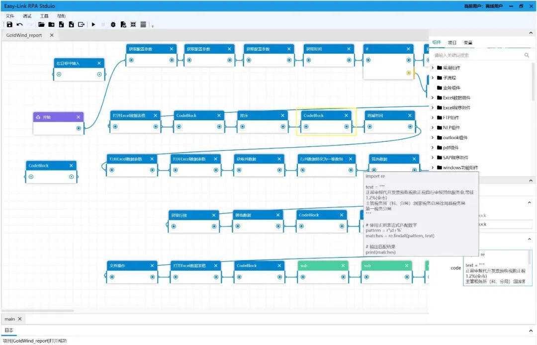 再举个简单的代码开发例子,RPA虽说是轻代码、可视化开发,但如果能够掌握对应的开发语言,开发工作将会更加得心应手。