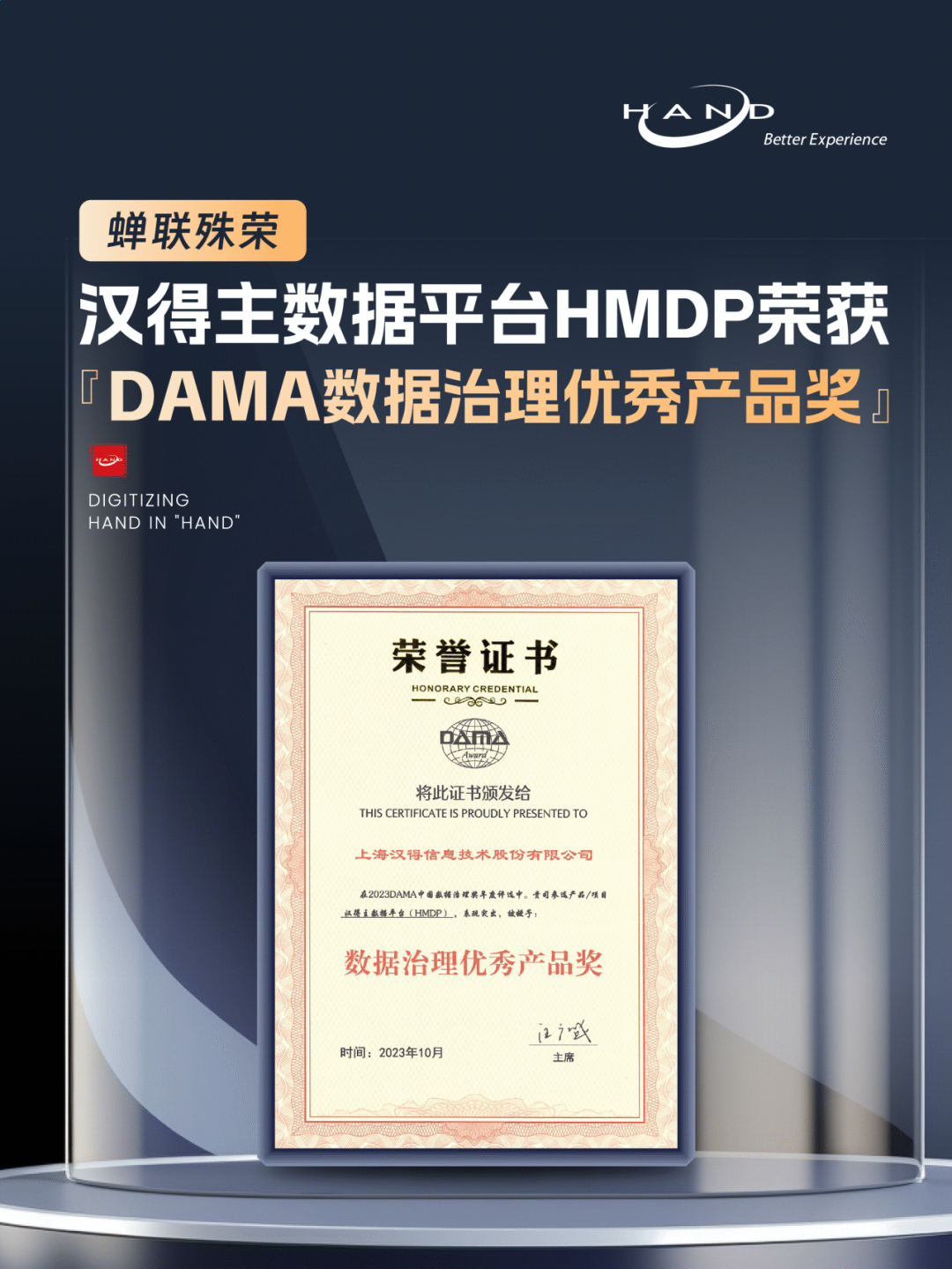 万象城AWC主数据平台HMDP荣获“2023DAMA中国数据治理优秀产品奖”