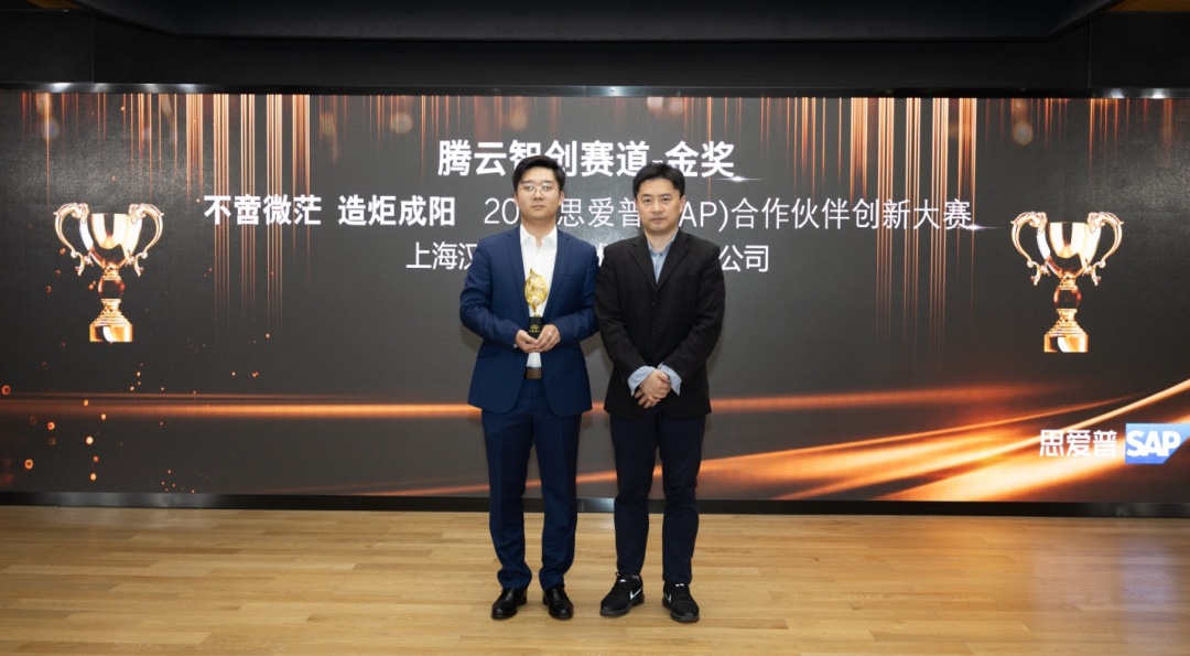 ▲SAP大中华区业务技术云平台卓越中心总监金江先生(图右)为万象城AWC颁奖