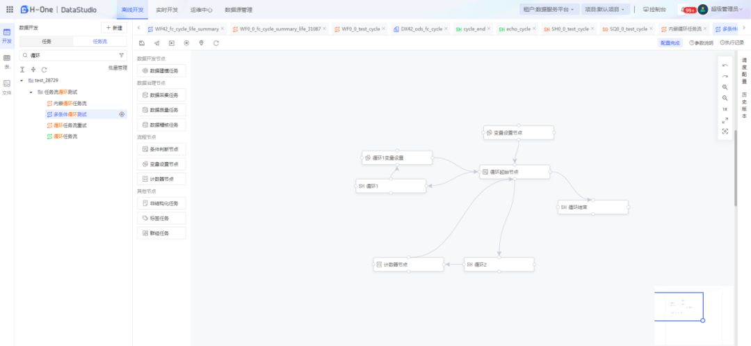 新增条件判断节点、变量设置节点、计数器节点,任务流支持有向有环图,实现循环或遍历处理任务。