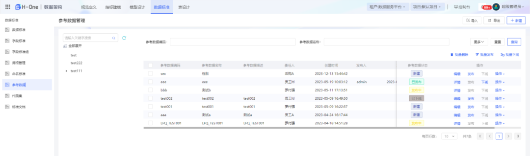 新增参考数据管理,参考数据是增加数据可读性、可维护性以及后续应用的重要数据。参考数据是对数据的解释,参考数据管理能够帮助企业对企业内的参考数据进行统一管理,为数字化转型建设给予参考数据依据。