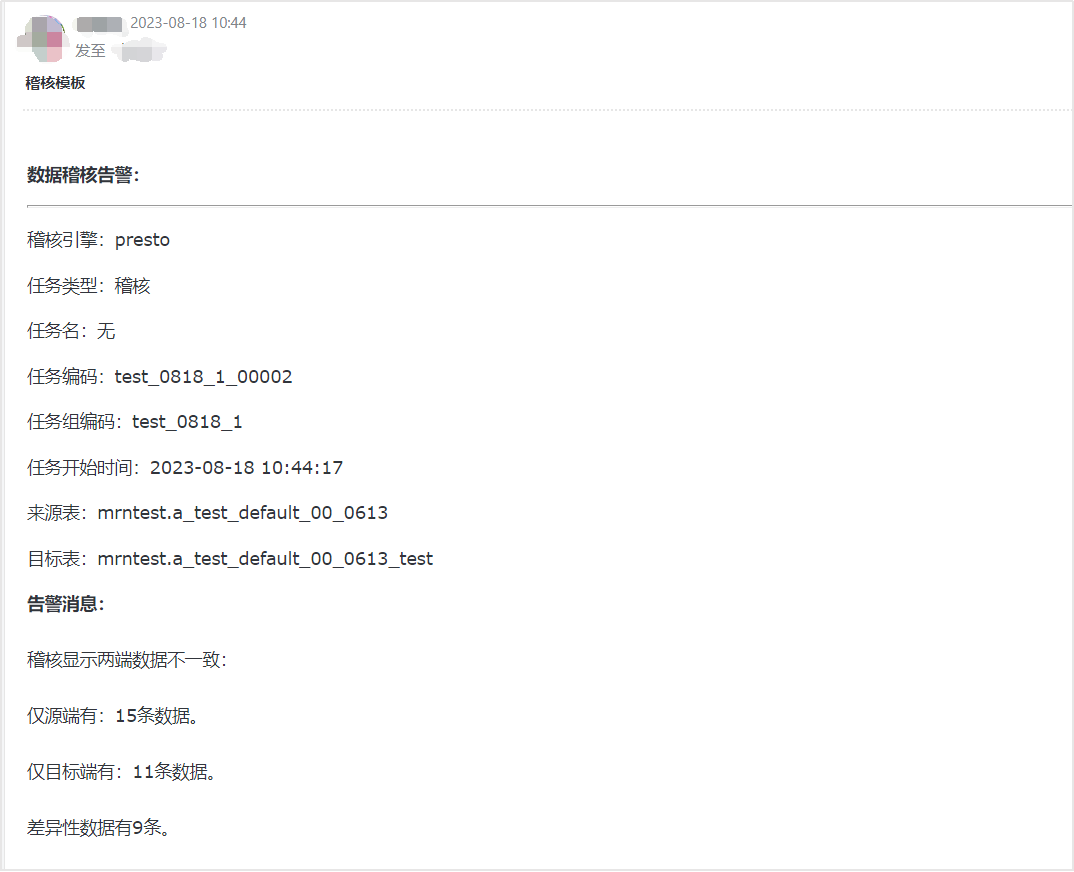 数据稽核触达面更广,支持邮件通知的方式将数据稽核明细信息直接发送给到具体用户,实现数据稽核信息到人,确保用户能及时分析数据质量情况。