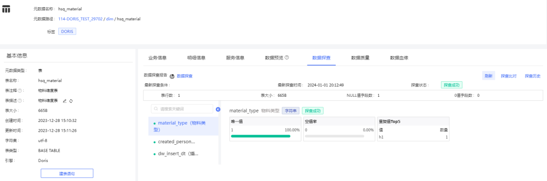 新增数据探查,支持一键探查数据近况,帮助用户深入分析数据成分、数据关系及数据格式。