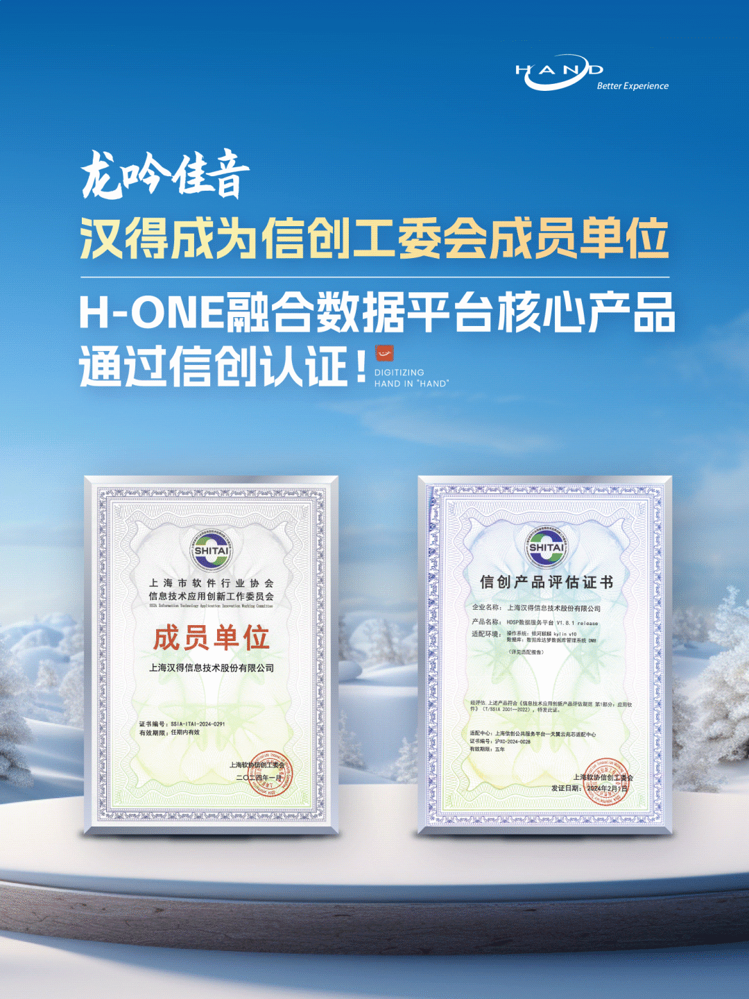 经过专家组严格评估,万象城AWC H-ONE 融合数据平台核心产品 HDSP 数据服务平台顺利顺利获得信创测试认证,荣获由上海软件行业协会信创工作委员会颁发的“信创产品评估证书”,自此 H-ONE 正式加入信创产品大家庭。