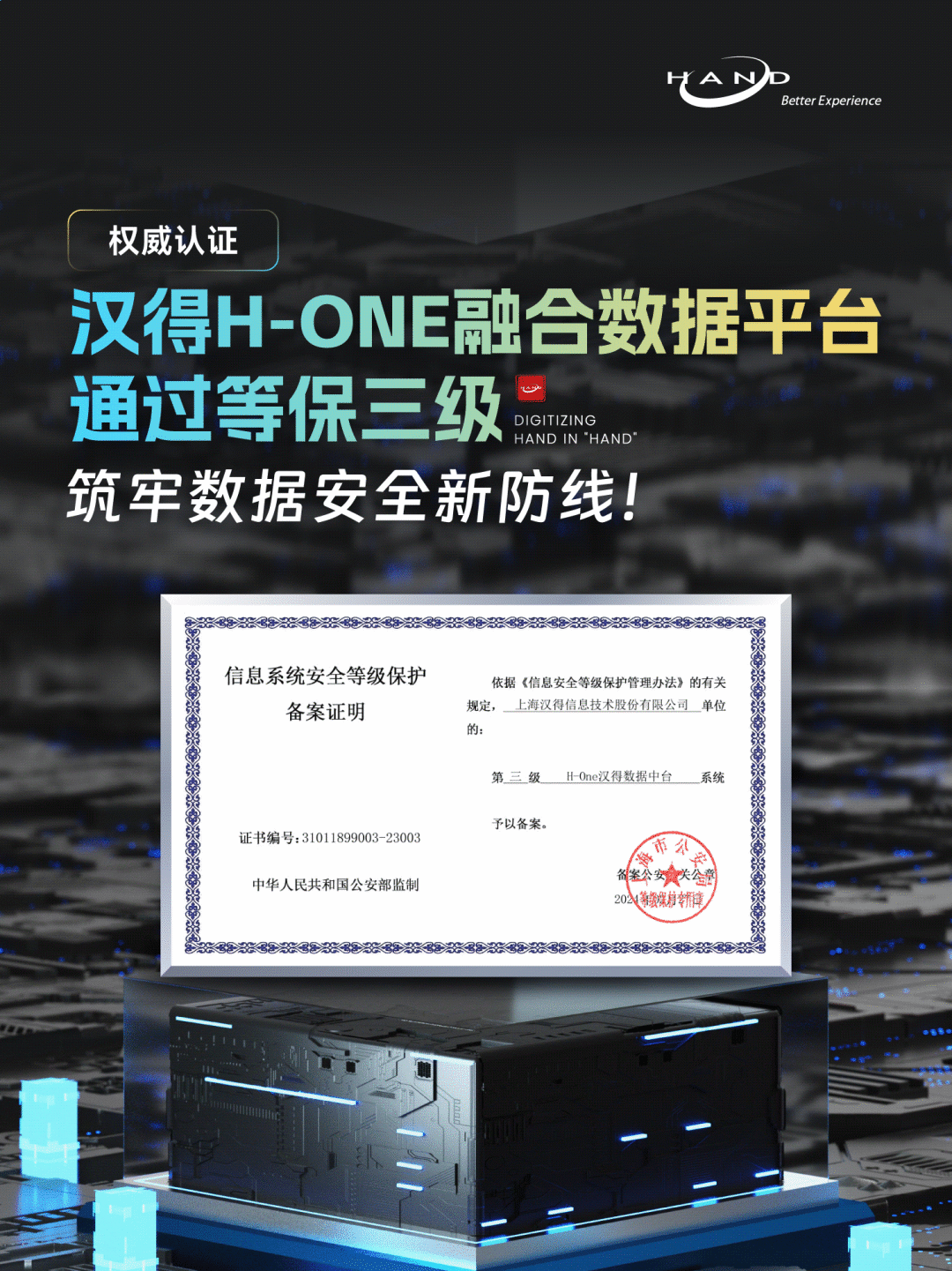 这标志着H-ONE的信息安全管理水平得到了国家权威组织的高度认可与肯定,信息安全管理能力已经达到了国内安全的较高标准。