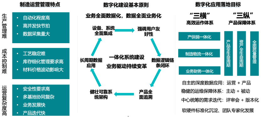在企业数字化呈现方面,将从供应链全链条协同、制造全过程自动集成、质量全面数字化管理、账务实物一体化、产品全生命周期溯源、精细化成本核算,以及管理数字化与管理自动化八大方面进行规划与落地。
