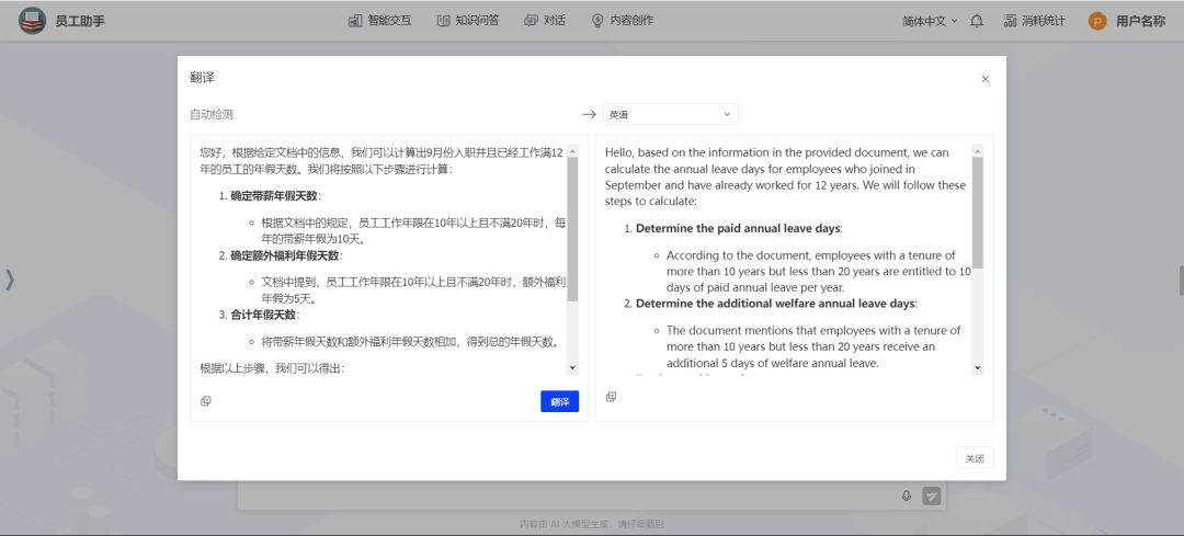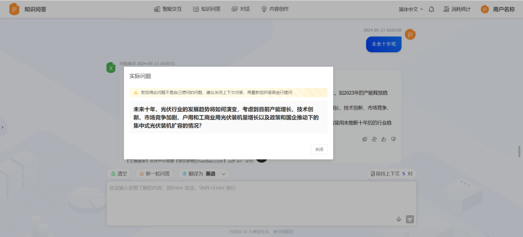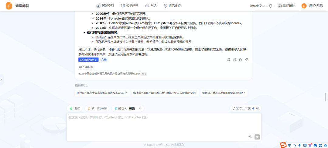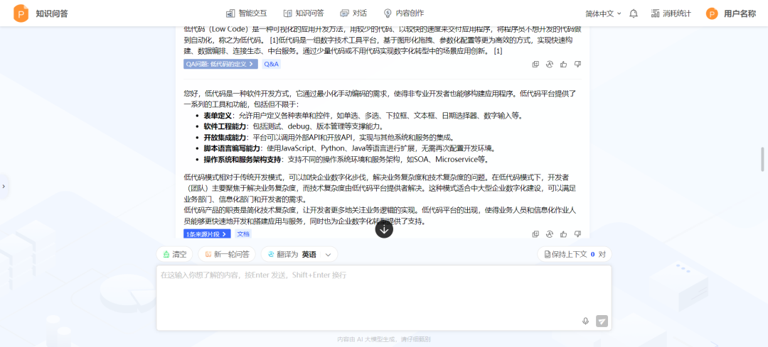 多语言回答能力:根据当前使用的语言,平台能自动匹配并返回相应语言的回答,例如,用户若以英文提问,平台将智能识别并调取中文文档中的相关信息,以英文形式给予准确回答。