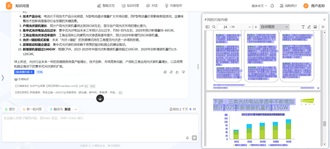 答案溯源:在缺乏片段溯源的知识问答中,用户若想核实具体答案,通常需手动翻阅整篇文档,耗时耗力。万象城AWC知识问答应用支持答案的片段溯源功能,能直观展示答案的原始来源片段,并精准定位其在原文档中的位置,极大地提升了用户的查询效率。
