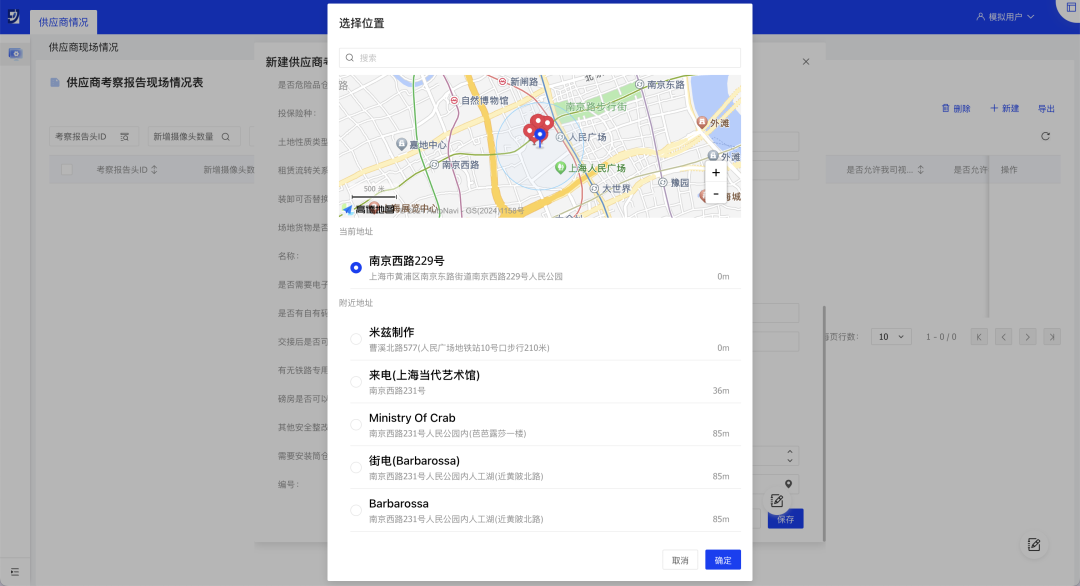 // 场景示例:用户对供应商实地考察时,实时记录考察地点。