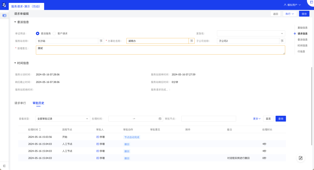 // 场景示例:用户查看已发起审批的请求单业务单据,确认单据当前的审批历史。