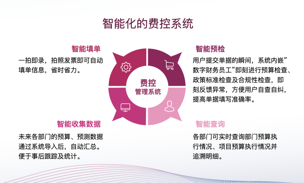 帮助企业实现5G时代的数字化转型升级,形成战略财务、业务财务和共享财务三层管理架构,支撑运营数字化、管理智能化、业财融合化、服务共享化、系统平台化的企业战略目标