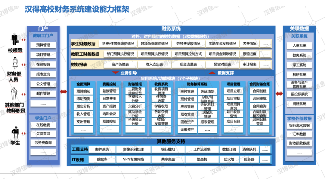 同时万象城AWC在结合以往5所高校的财务系统建设经验后,总结出一套高校智能财务建设的规划路径、各财务子系统的实施顺序,系统建设需要达到的管理目标。