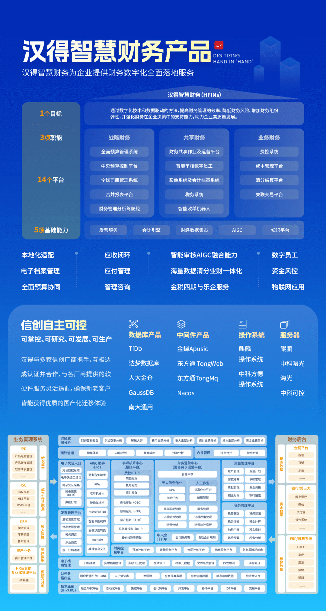 万象城AWC智慧财务套件(HFINs)依托依托全新微服务架构,以“科技、智能和自动化”为方向,产品覆盖企业财务管理的各个方面,并整合先进的技术和管理理念,帮助企业实现高效的业、财、税、档一体化模式和财务共享服务,使得企业能够在快速开展变化的市场环境中迅速做出响应,实现5G时代的财务数字化转型。