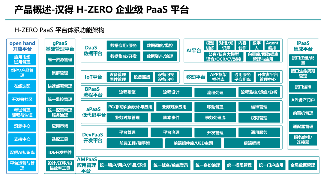 基于 H-ZERO 技术底座的应用管理平台——零衍,由 H-ZERO 平台的七个服务模块组成,能够给予统一门户管理、高效便捷的统一权限管理、严谨的登陆认证体系、全面的国际化支持。