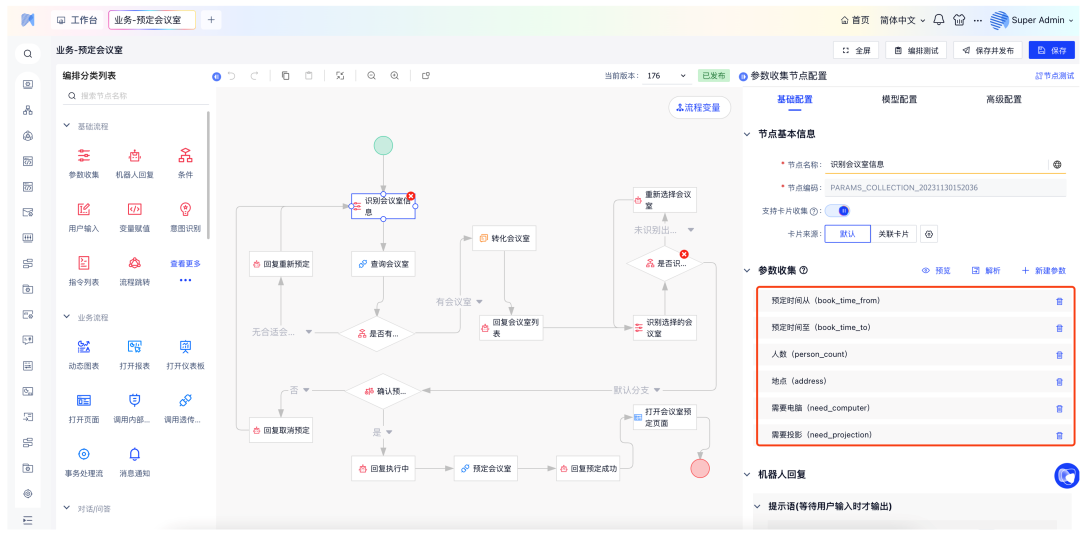 在对话中生成的这张单据录入“卡片”,并不需要工程师去预先开发,而只需要在AIGC编排器中简单设定参数,AIGC平台即可以在对话中,即时自动“生成”这张临时卡片。
