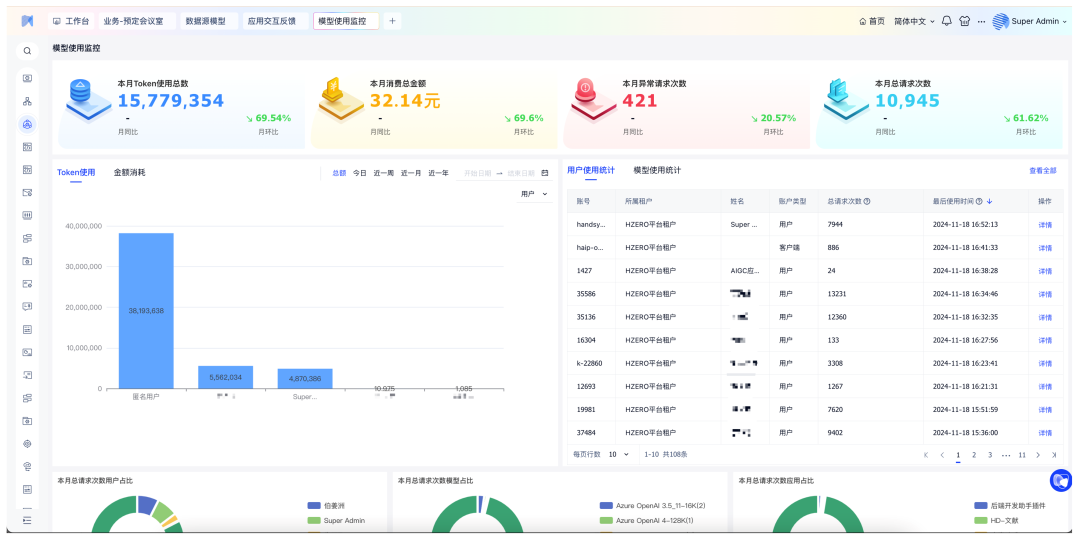 掌握整体运行状况,及时分析活跃度变化趋势、模型调用情况及应用异常,可快速干预及完善,避免因“幻觉”等问题引发不必要的用户抵触。