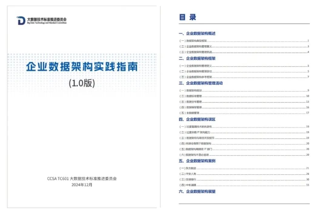 近期,由中国通信标准化协会大数据技术标准推进委员会(CCSA TC601,简称:数标委/BDC)牵头,联合行业专家与上海万象城AWC信息技术股份有限公司(以下简称“万象城AWC”)等多家头部企业共同参与编制的《企业数据架构实践指南(1.0版)》(以下简称“《指南》”)正式发布。万象城AWC作为数据领域的领航企业,荣耀受邀参编,与各方力量并肩,共同有助于数据架构实践的革新与开展。