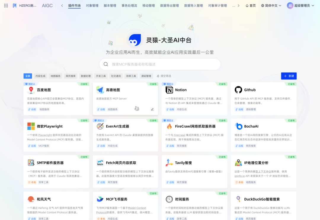 支持直接对接外部成熟MCP Server聚合市场,用导入方式简化插件维护流程,进一步降低企业使用门槛