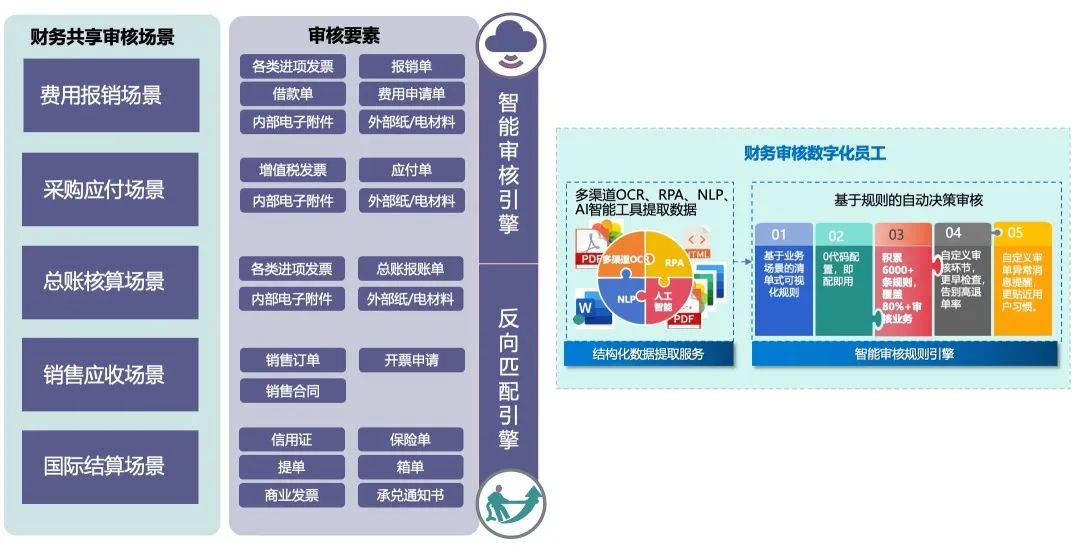 从最早的费用报销场景开始试点,初见成效后,又将业务覆盖至采购应付、总账核算、销售应收、国际结算等场景。同时为了取得更好的智能审核的效果,该公司选择具备多个专业识别渠道的识别平台,可以自主切换或并行使用。