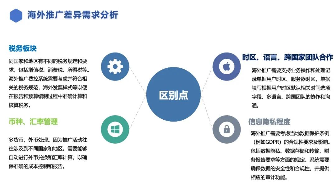 全球化合规风险,涉及海外业务的GDPR及海外子公司涉及多税务政策、外币结算及多语言等问题