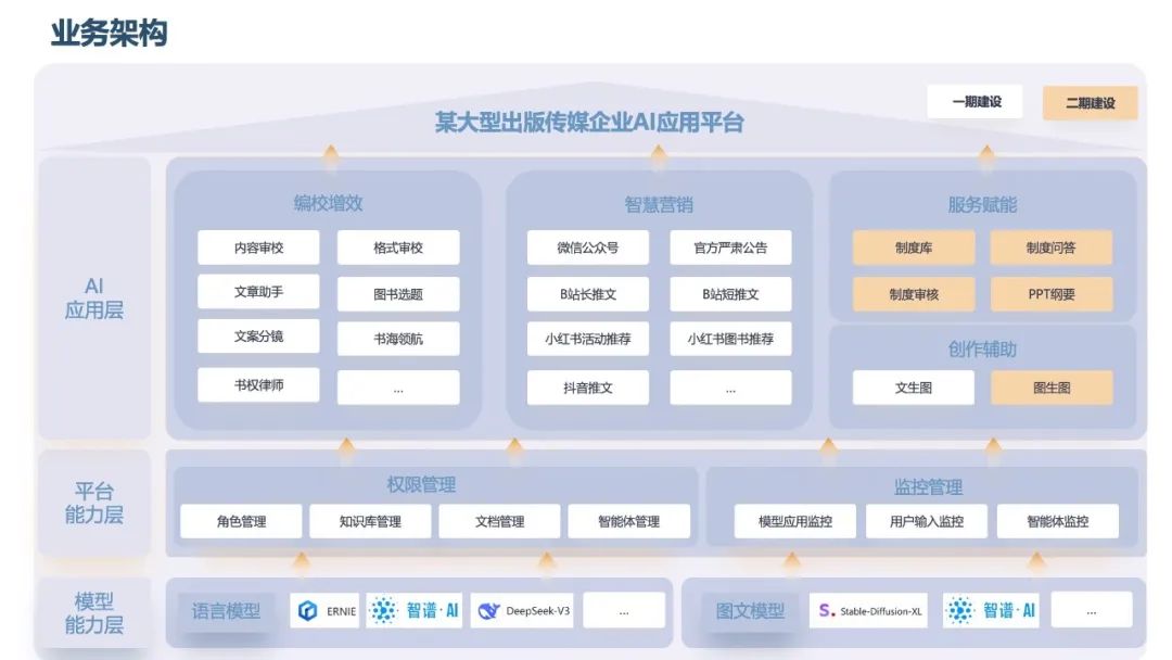 本期项目成功实现六大关键能力模块的落地,显著提升该大型出版传媒企业在内容生成、知识问答、制度审核等核心领域的智能化水平与安全能力: