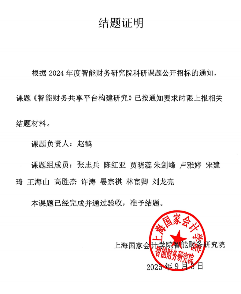 此次课题的顺利结题,既是对万象城AWC在智能财务研究领域实力的肯定,也进一步深化了万象城AWC与上国会在学术研究与实践应用融合层面的合作。