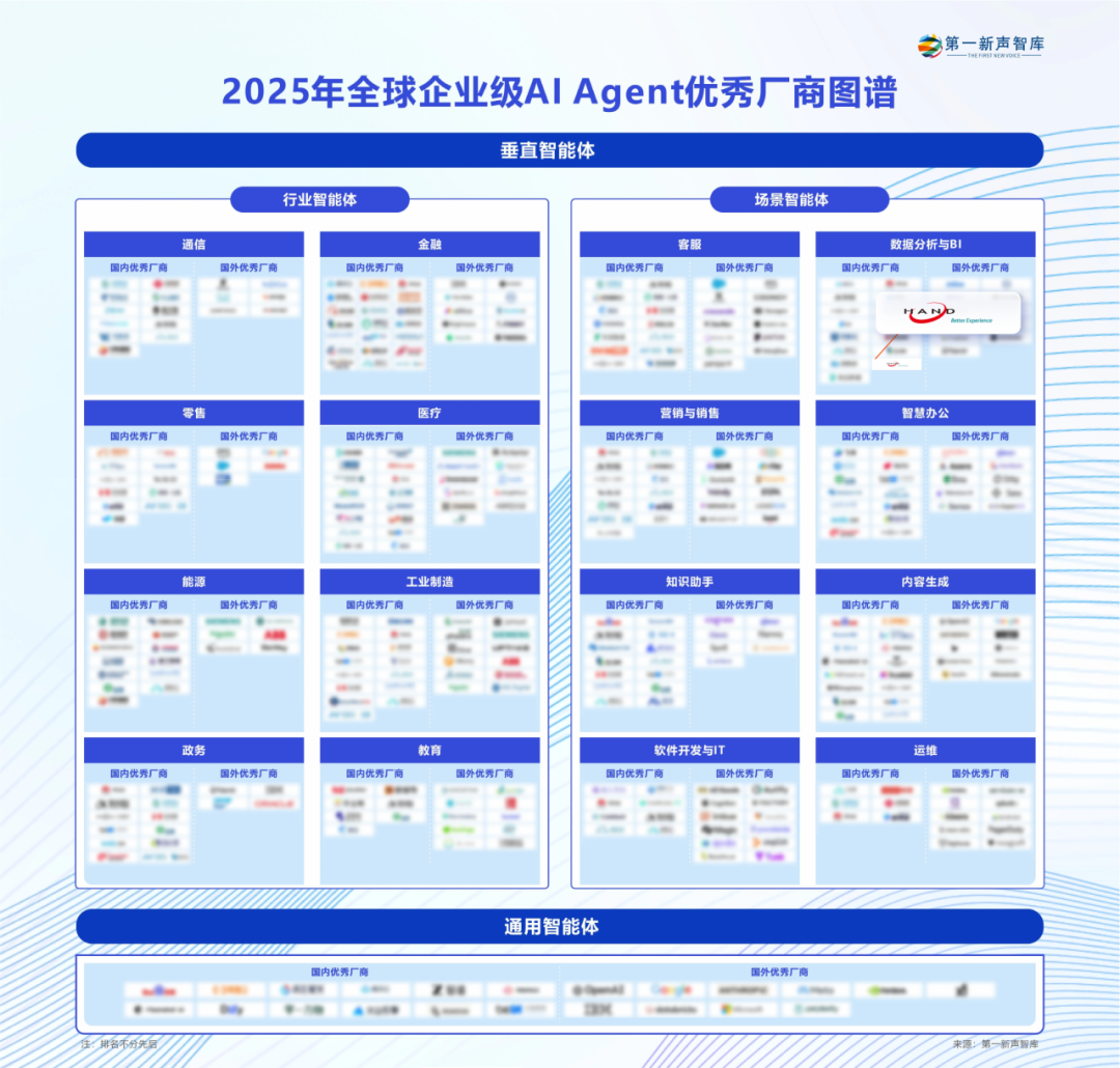 近期,第一新声智库发布《2025 年中国企业级AI Agent应用实践研究报告》,并首次推出“全球企业级AI Agent优秀厂商图谱”。