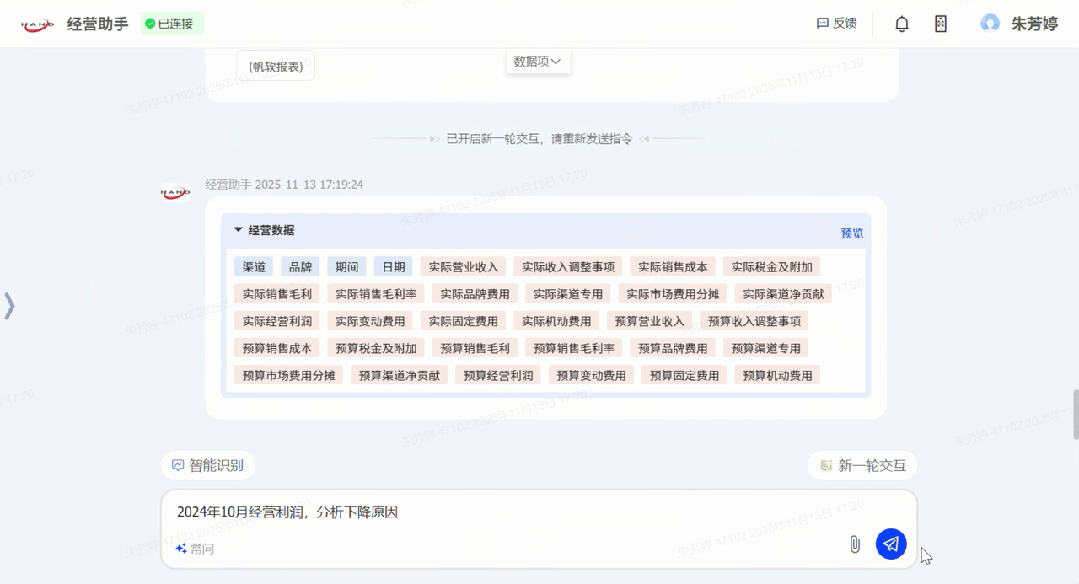 业务人员直接提问“查找10月利润下降原因”,几分钟内锁定根因,一键将完整分析过程进行分享,即点即看,快速决策