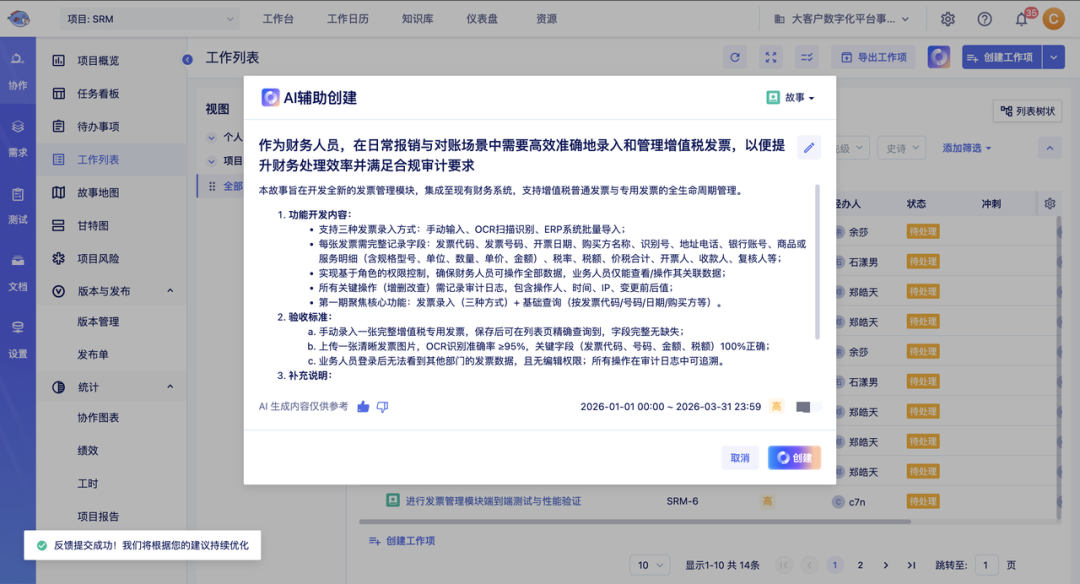 下一秒,一个标题清晰、描述详尽、负责人和截止日均已设定的工作项,便已诞生在你的项目看板中。从“手动录入”到“口语化创建”,效率与体验,一步跨越。