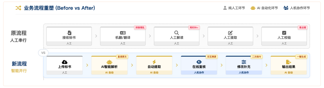 复杂标书拆解与初评依赖资深专家,处理周期长、并发能力受限,难以匹配竞标窗口期的响应要求。