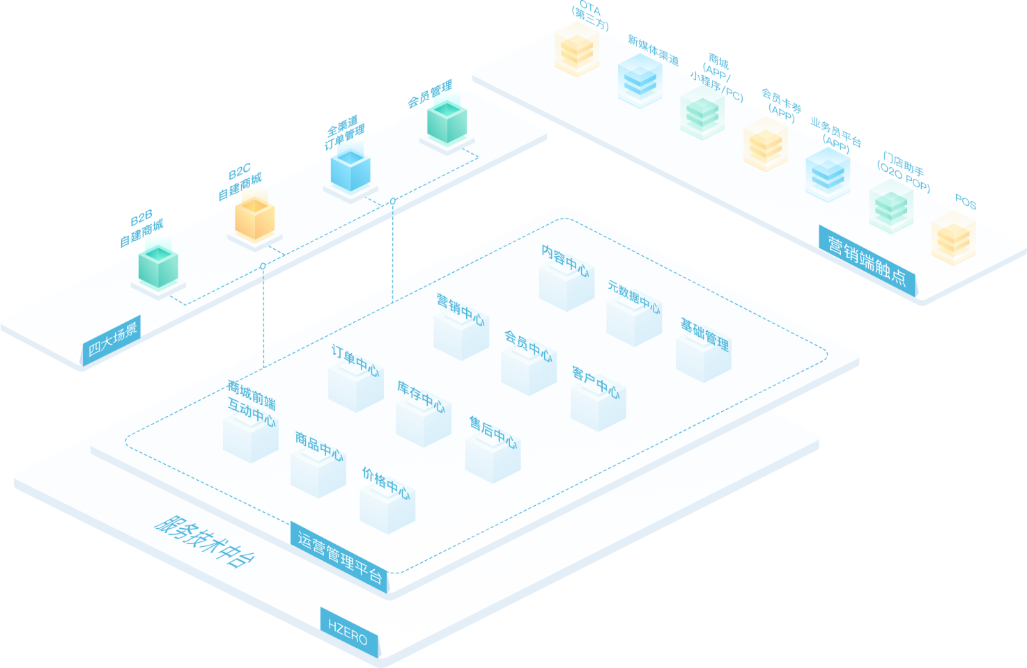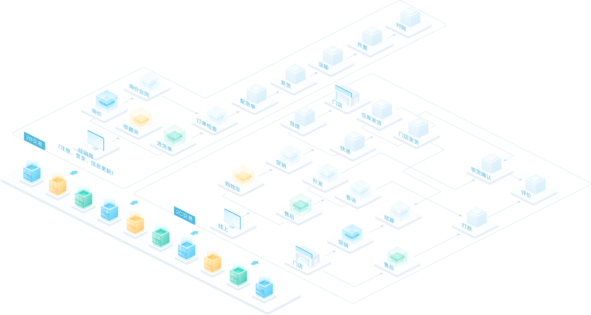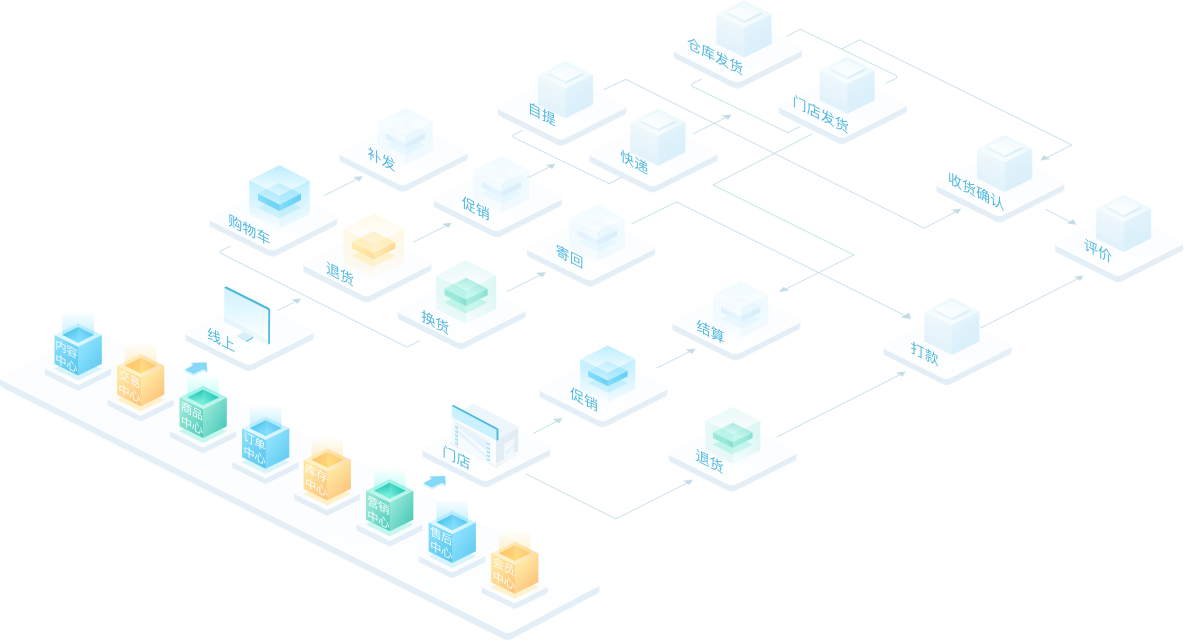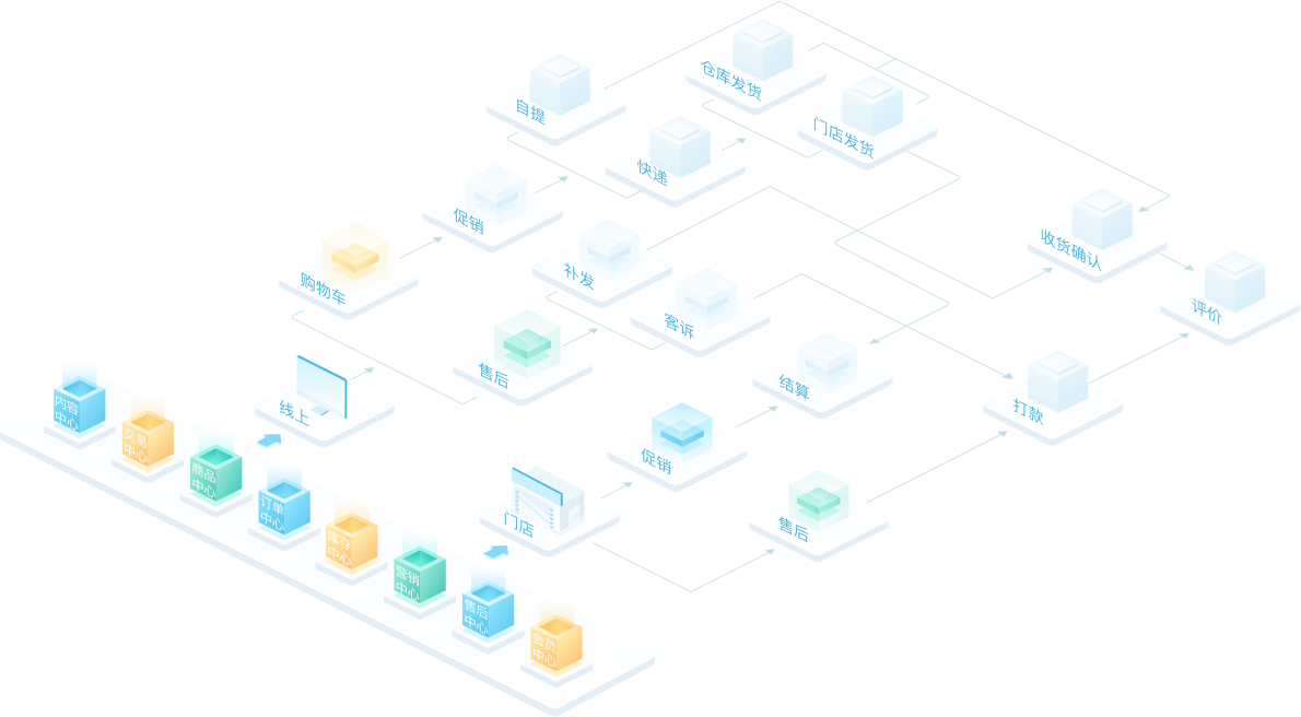 万象城AWC营销管理软件O₂支持如下4大应用业务场景:B2B自建商城、B2C自建商城、全渠道订单管理、会员管理。系统采用很新的微服务技术框架,深度融合行业特性,将企业核心能力以共享服务中心的形式进行沉淀,帮助企业快速低成本的进行业务创新和拓展。